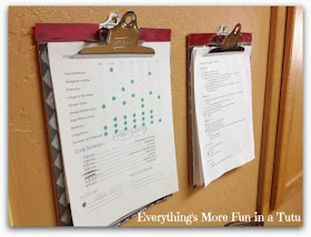 We have one for each one of us (except for Baby B) to hold important papers that are not "file" worthy. On my board I keep monthly chores, labels for canning, doctors information, and some cards that came with flowers from my boys. My husband keeps his school papers in order. Older Boy has his chore chart up while Younger Boy's chore chart is hidden under his daily assignments for homeschool.